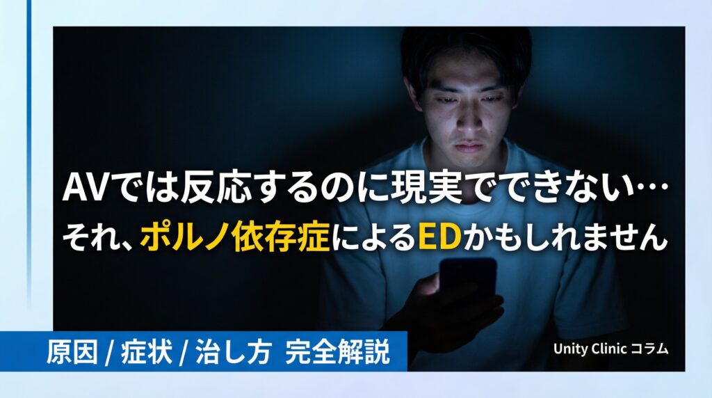 「AVではマスターベーションできるのに、現実の女性には勃起しない」——そんな悩みを抱えていませんか? 実はそれ、ポルノ依存症が引き起こすED(勃起不全)のサインかもしれません。 スマートフォンやインターネットの普及により、アダルトコンテンツはい...