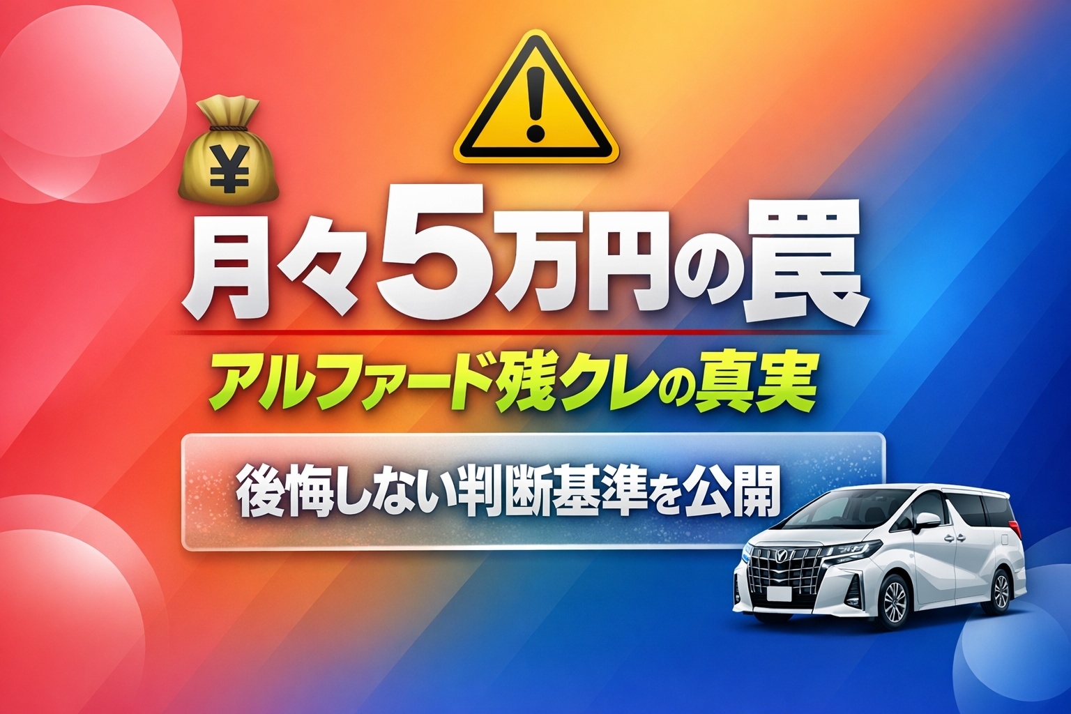 トヨタの最高級ミニバン「アルファード」。700万円を超える高級車ながら、街中で見かけることが多いのはなぜでしょうか。その秘密は「残価設定型クレジット(残クレ)」という購入方法にあります。月々5万円~8万円の支払いで、800万円近い高級車に乗れるというカラクリ。でも、実はこの仕組みには大きなリスクも隠れているんです。本記事では、アルファード残クレの真実のメリット・デメリット、失敗しない判断基準、契約満了時の選択肢まで、プロの視点で完全解説します。「月々の支払いの安さだけに惑わされず、自分のライフスタイルに本当に合った選択ができるようになる」ことをお約束します。あなたのアルファード購入が、人生を豊かにするツールになるのか、それとも苦しい負債になるのかは、この記事で学ぶ知識にかかっているんですよ。
